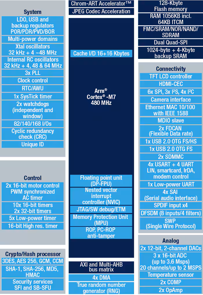 描述 STM32H750xB 器件基于工作频率可达48…